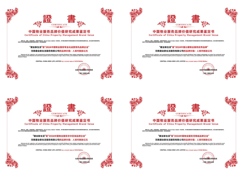 9月13日,由中國(guó)企業(yè)評(píng)價(jià)協(xié)會(huì)、清華大學(xué)房地產(chǎn)研究所、北京中指信息技術(shù)研究院主辦,北京中指信息技術(shù)研究院中國(guó)房地產(chǎn)TOP10研究組承辦的“2024中國(guó)房地產(chǎn)品牌價(jià)值研究成果發(fā)布會(huì)”召開(kāi)。我們榮獲了2024中國(guó)物業(yè)服務(wù)專業(yè)化運(yùn)營(yíng)領(lǐng)先品牌企業(yè)”“2024中國(guó)公建物業(yè)服務(wù)優(yōu)秀品牌”“2024中國(guó)物業(yè)服務(wù)華中區(qū)域品牌企業(yè)”“2024中國(guó)物業(yè)服務(wù)河南省品牌企業(yè)”四大獎(jiǎng)項(xiàng)。