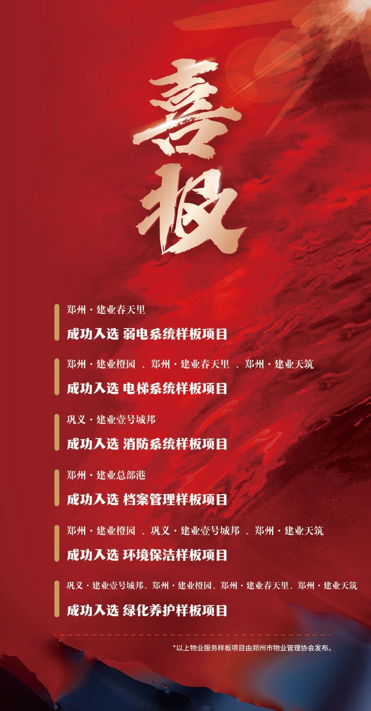 9月9日,我們的多個(gè)項(xiàng)目入選了鄭州市物業(yè)管理協(xié)會(huì)公示的“2024年鄭州市物業(yè)服務(wù)樣板項(xiàng)目名單”。這是對(duì)我們服務(wù)品質(zhì)的認(rèn)可以及在物業(yè)服務(wù)領(lǐng)域深耕細(xì)作的肯定。
